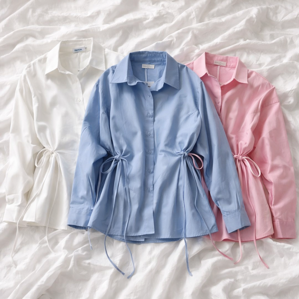 شومیز بغل بند دار که گره میخوره و کمر رو باریک نشون میده قد ۷۰ و جنس پارچه هم سوپر سافت هست